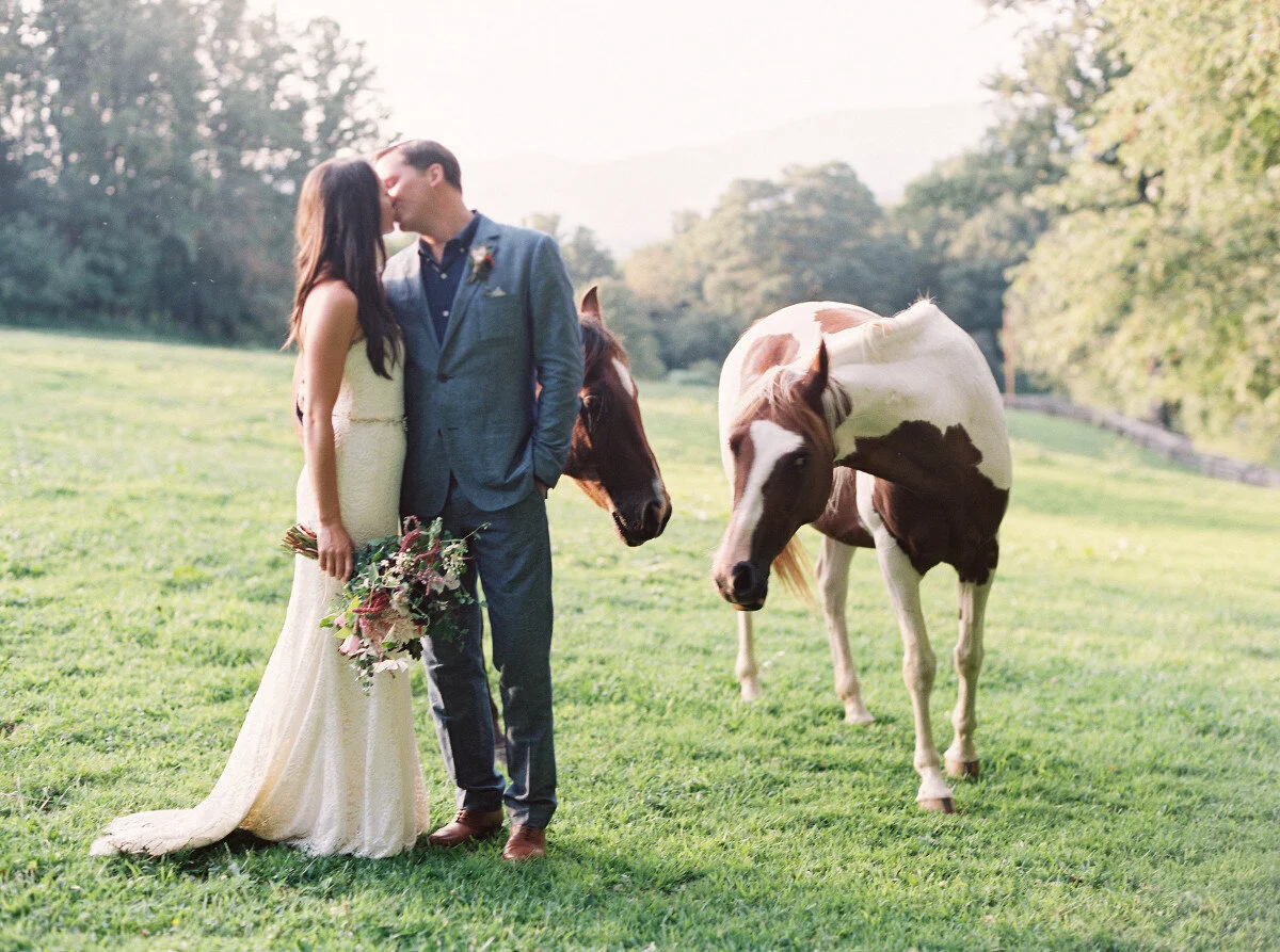 Venue: Old Sherrill's Inn at Hickory Nut Gap Farm | Photography: Laura Gordon | Videography: Kenneth Price | Styling, Foraged Floral Design + Coordination: Becca Atchison, Rebecca Rose Events | Film Lab: PhotoVision | Bouquet & Boutonniere: Amy Lynne Originals | Hair and Makeup: Sara Egri | Bridal Gown: Theia Couture | The Sentamentalist | Bride's Shoes: Cynthia Vincent | The bride’s wedding band: N+A New York | Bride’s Belt: Twigs & Honey | Groom's Suit: Bonobos | Musicians: The Night Trotters | Film/Cinematography: Kenneth Price | Invitation Design: Beth Ann Polivka