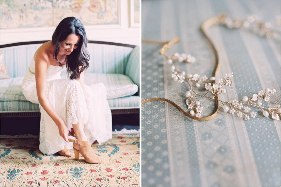 These enchanting film images, captured by Laura Gordon, are simply perfect. It was an intimate, joyful day - full of all of the best feelings, emotions and details. The beauty of Asheville, North Carolina was on full display! I ventured up the mountains early that morning and met Sara's sweet mama and sister at Old Sherrill's Inn. They handed me several boxes of goodies they had gathered for the day and gave me a lunch they had packed (including the most delicious fresh figs from her garden - amazing!) and then left to go meet up with Sara and get ready. I had a full day by myself in the most magical place to just create... to create whatever I thought would be most meaningful to Sara and Justin and they gave me full freedom to do just that. I foraged from a fresh garden and listened to the birds sing while I worked. There's no way to describe it other than to say that I felt like my heart was on fire.