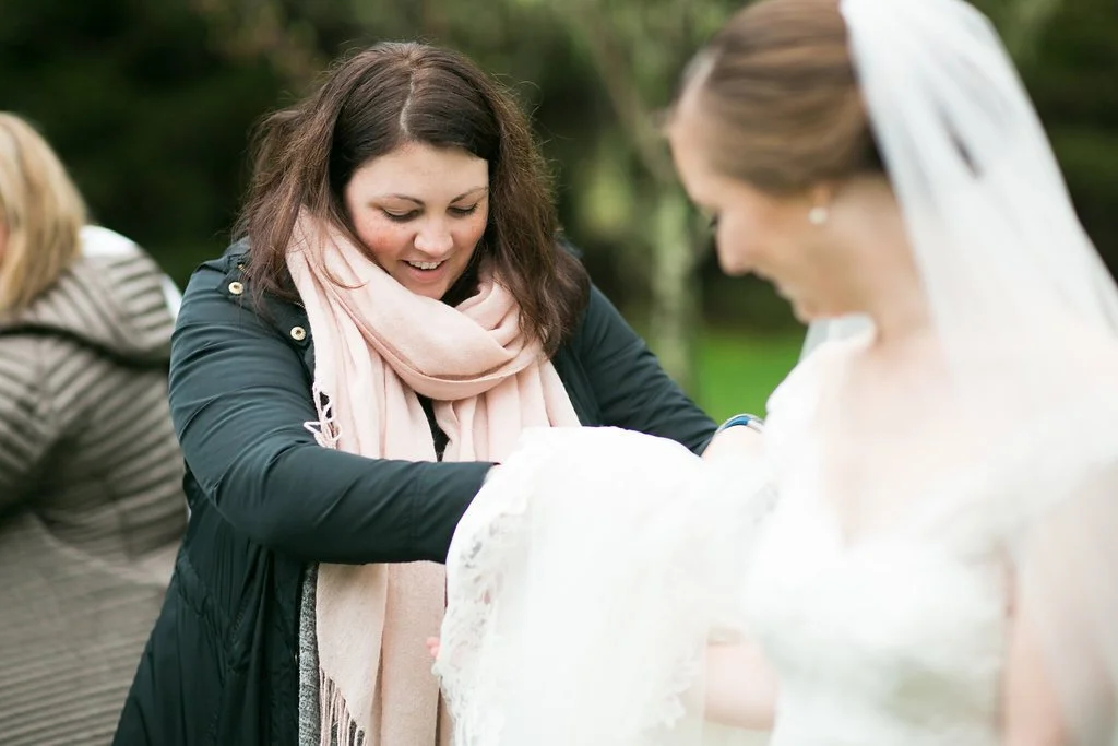 Absolutely can't wait to share more from this past weekend's stunning wedding, but we've got to keep it under wraps for a while. In the meantime, enjoy a few of these lovely images of Sarah... isn't she so beautiful!?! I threw in a couple funny outtakes from Nancy as well. If you didn't believe it was freezing cold and wet by looking at Sarah, you can definitely tell when you see me and Betsy! Ha! Hello frizzy hair and rain gear! ;)